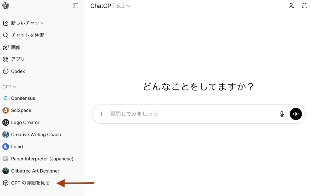 左側メニューで「GPTの詳細を見る」をクリックします。